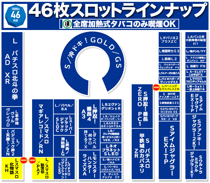 - [4]パチ:306台 [1]パチ:217台 [1000円/46枚]スロ:279台
