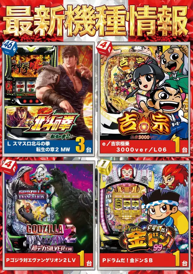- 4パチ:240台 1パチ:160台 1000円/46枚:128台