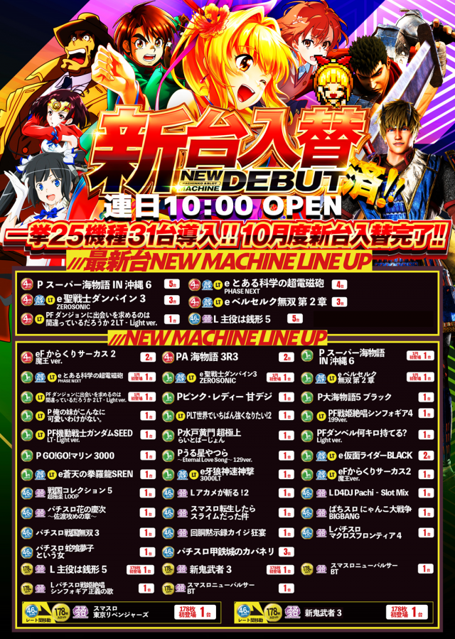 - [1]パチ:195台 [4]パチ:117台 [1000円/46枚]スロ:210台 [1000円/178枚]スロ:41台
