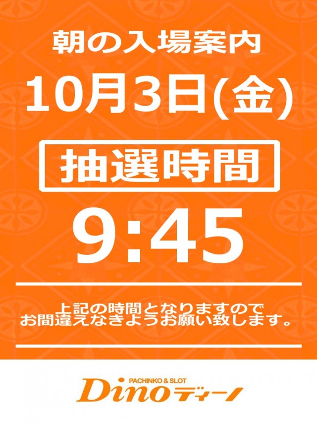 - 新台入替、または混雑時には9時45分より抽選入場