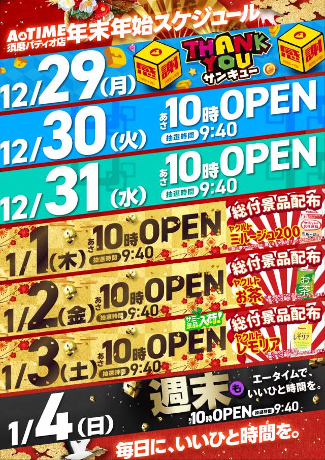 旧年中は、エータイム須磨パティオ店をご愛顧いただき、