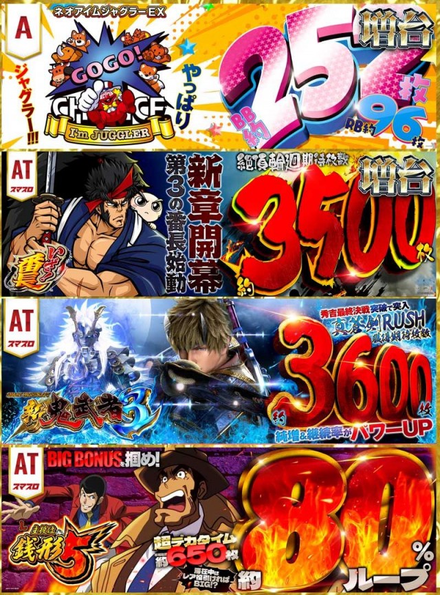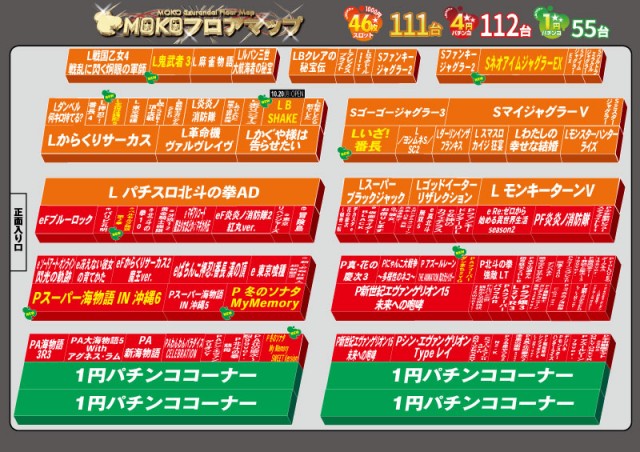 - [4]パチ:112台 [1]パチ:55台 [1000円/46枚]スロ:111台