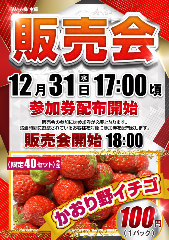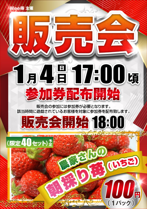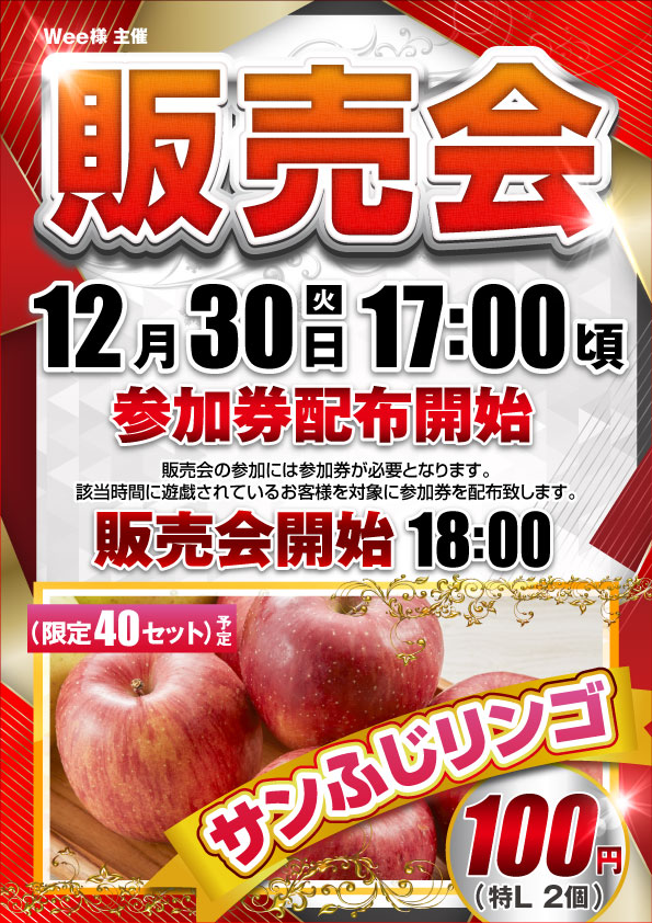 - 先着順 ※混雑状況によりAM9:45より入場抽選 抽選実施日はLINEでお知らせします