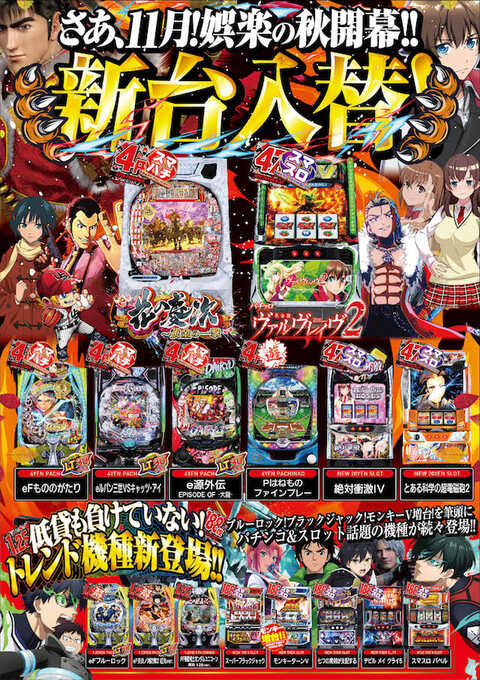 - [1000円/250玉]パチ:-台 [None]パチ:-台 [1000円800玉]パチ:-台 [1000円/188枚]スロ:-台 [1000円/47枚]スロ:-台