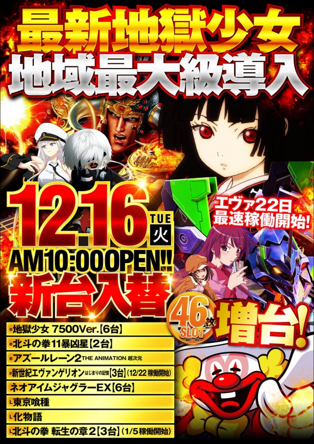46枚スロット増台!!
