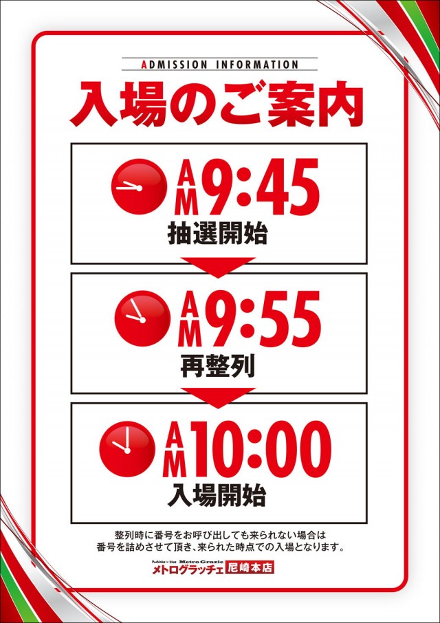 - 9時45分に抽選をおこないますので予めご了承下さいませ!