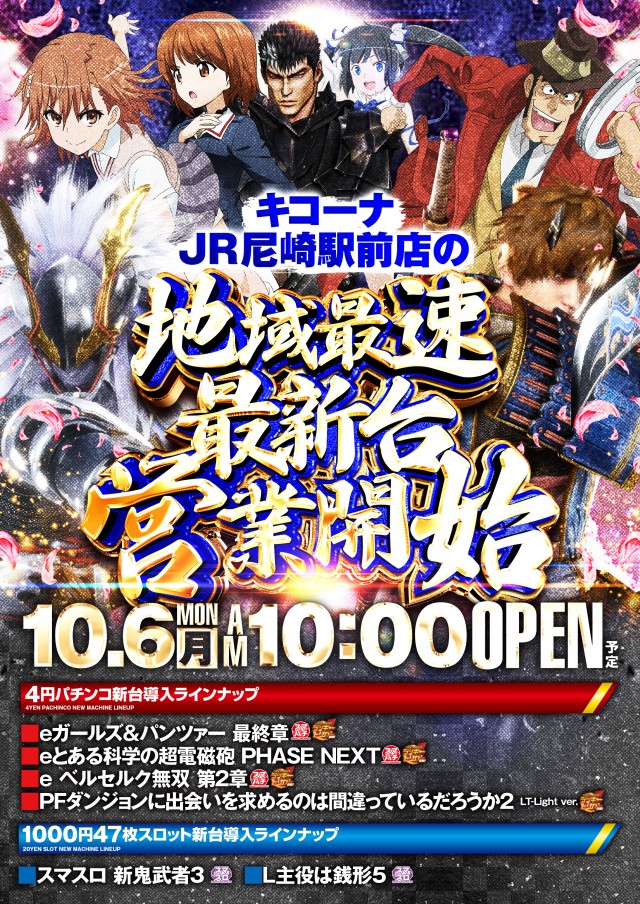 - 4円パチンコ156台★1円パチンコ52台★1000円47枚貸しスロット104台 ★駅チカ JR尼崎駅から徒歩3分 ★駐車場200台完備