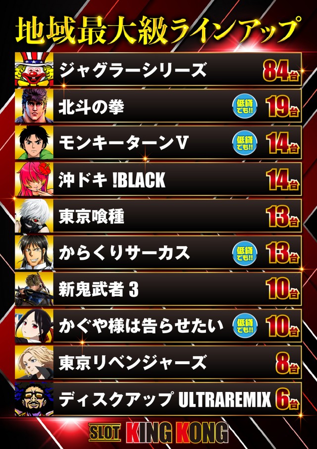 - [1000円/46枚]スロ:343台 [1000円/170枚]スロ:57台