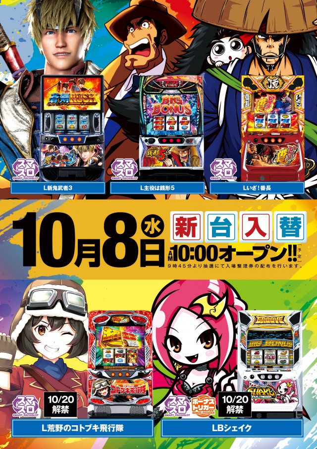 - [1.099]パチ:76台 [4.386]パチ:52台 [8]スロ:13台 [1000円/46枚]スロ:86台