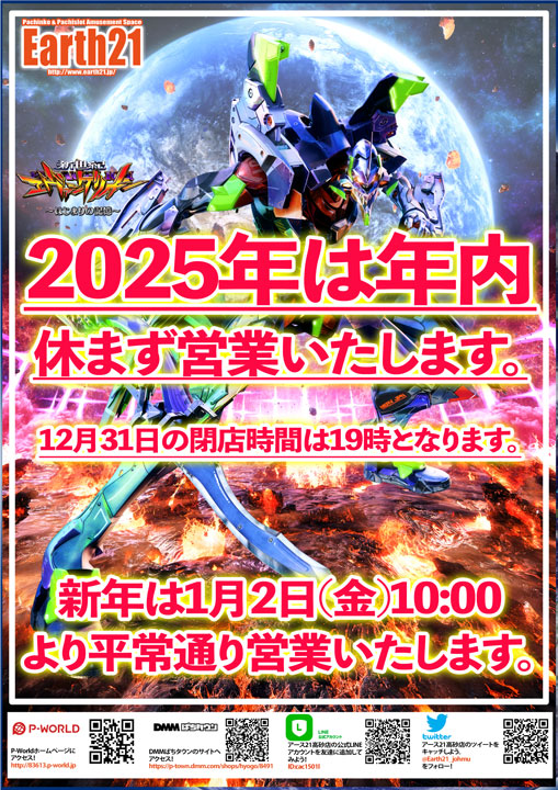 アース21は年内休まず営業いたします!新年は1月2日10時開店です!