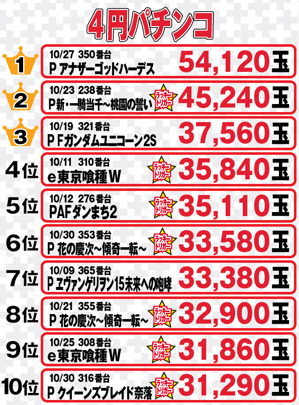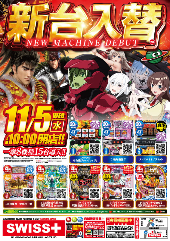 - 新台入替当日朝9:45正面入口にて整理券を配布します!(申し込み多数の場合抽選となります)