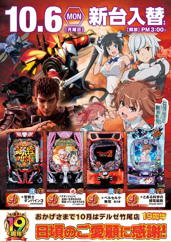 - [4]パチ:260台 [1]パチ:160台 [1000円/46枚]スロ:240台 [500円/89枚]スロ:40台