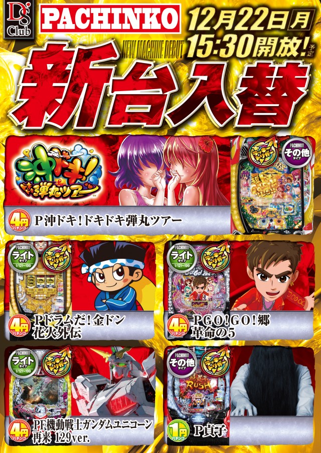 - [4]パチ:128台 [1]パチ:64台 [0.5]パチ:32台 [20]スロ:64台 [5]スロ:32台