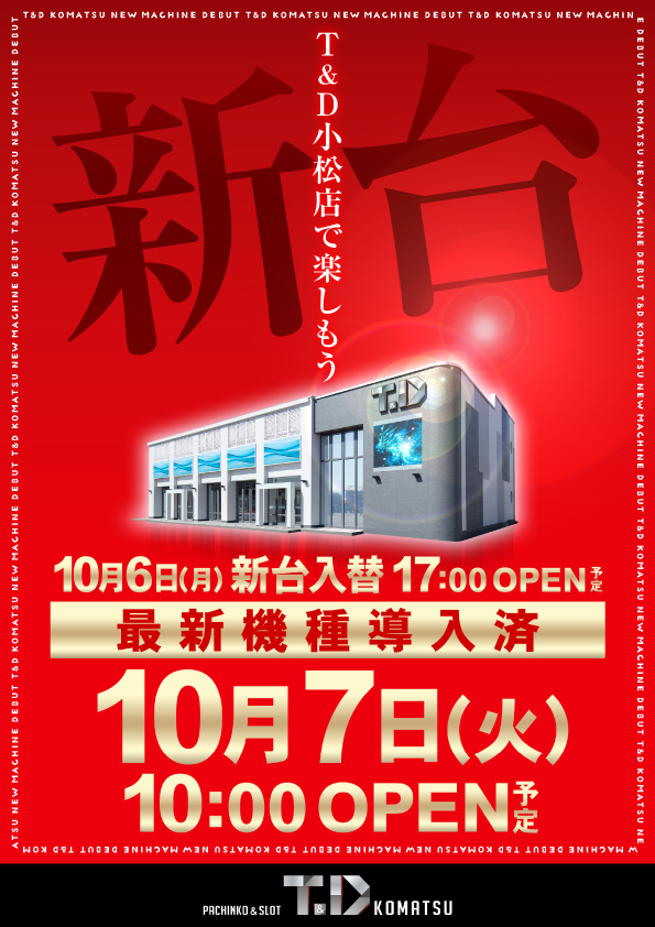 - 小松エリア初!! スロットコーナー全域、加熱式タバコ喫煙可! 最新機種・人気機種も豊富に取り揃えております! パチンコ、スロットともに全台各台計数機完備!! お好きな時間に、お好きなタイミングで楽々ご遊戯して頂けます!