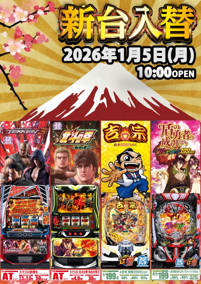 - [4]パチ:195台 [200円/168枚]パチ:47台 [1000円/47枚]スロ:100台