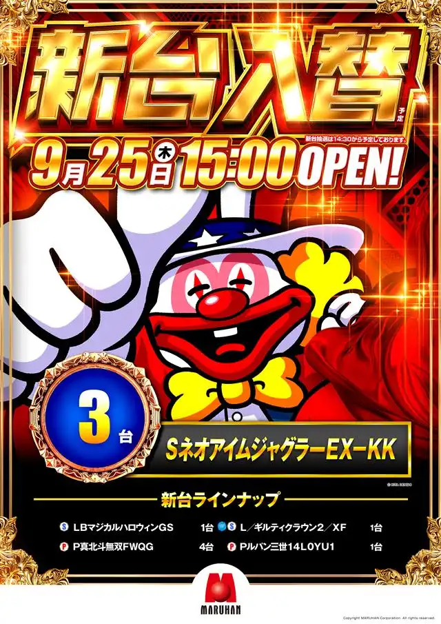 - [4]パチ:240台 [1]パチ:120台 [0.2]パチ:80台 [1000円/46枚]スロ:200台 [5.43]スロ:40台 [1000円/460枚]スロ:40台