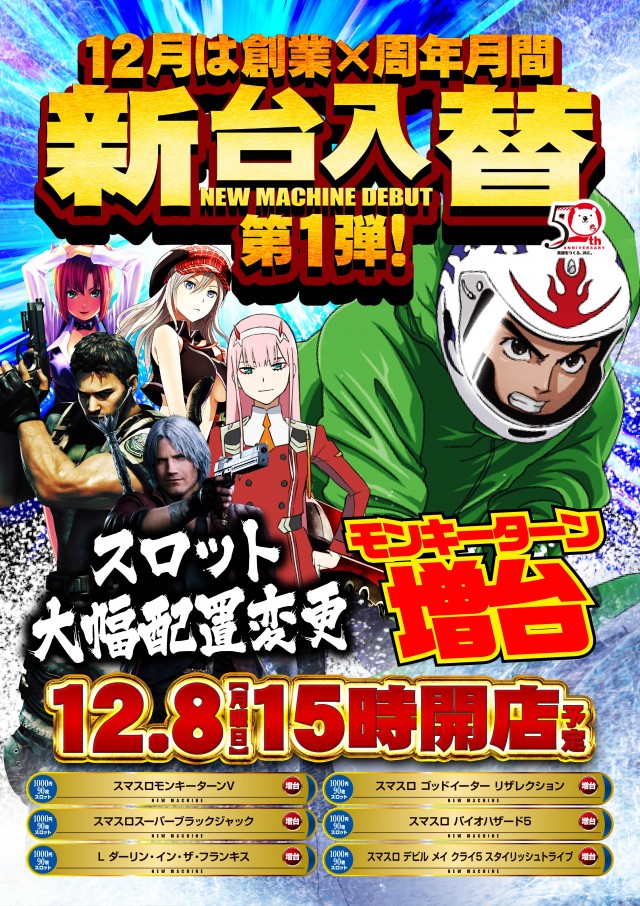 - [1]パチ:239台 [2]パチ:120台 [1000円/90枚]スロ:120台