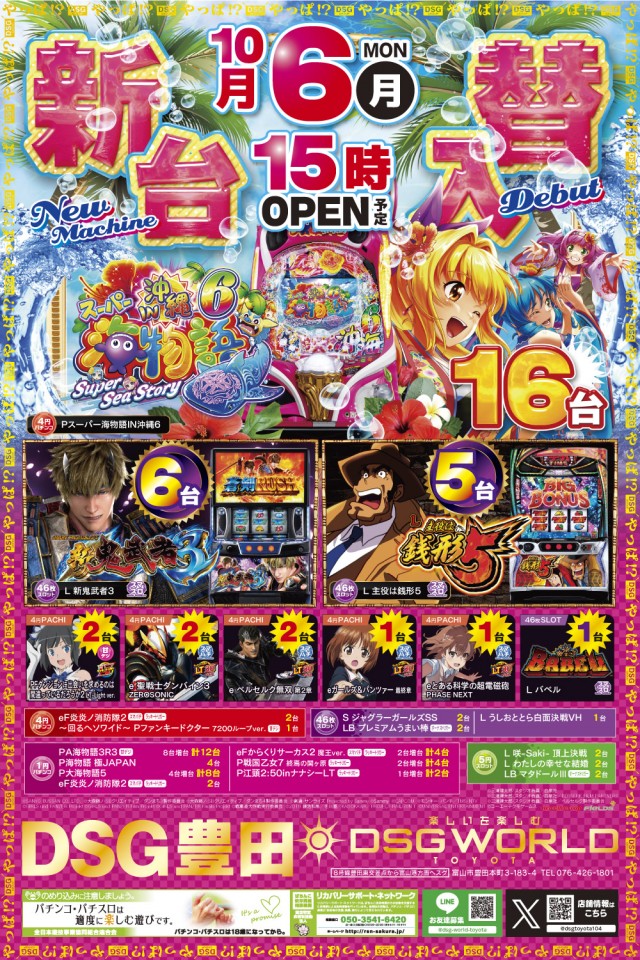 - 4パチ:224台 1パチ:272台 46スロ:288台 5スロ:116台