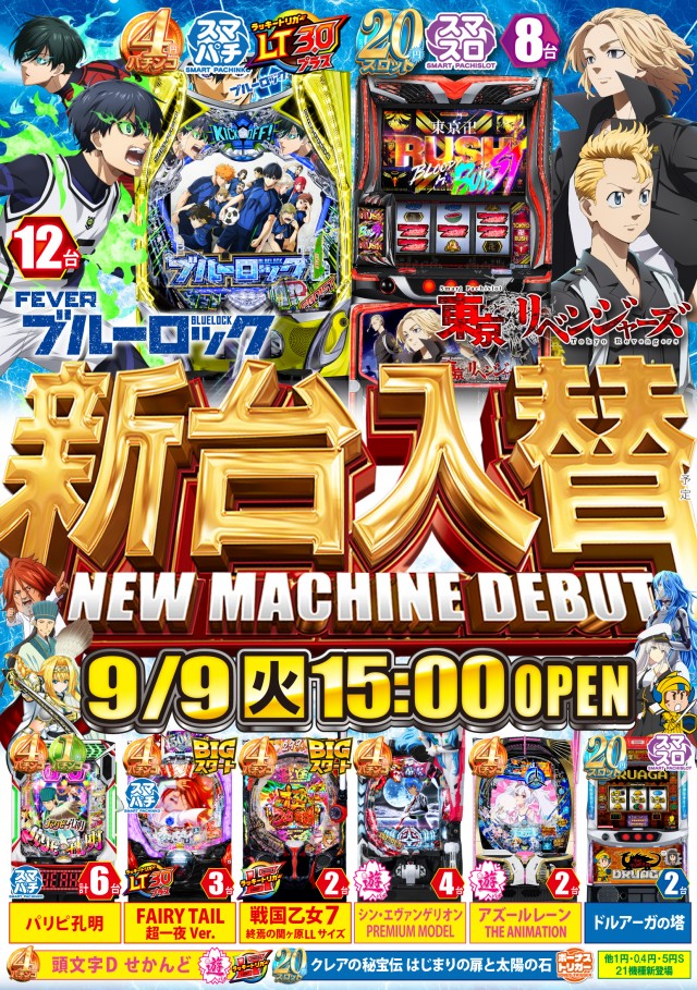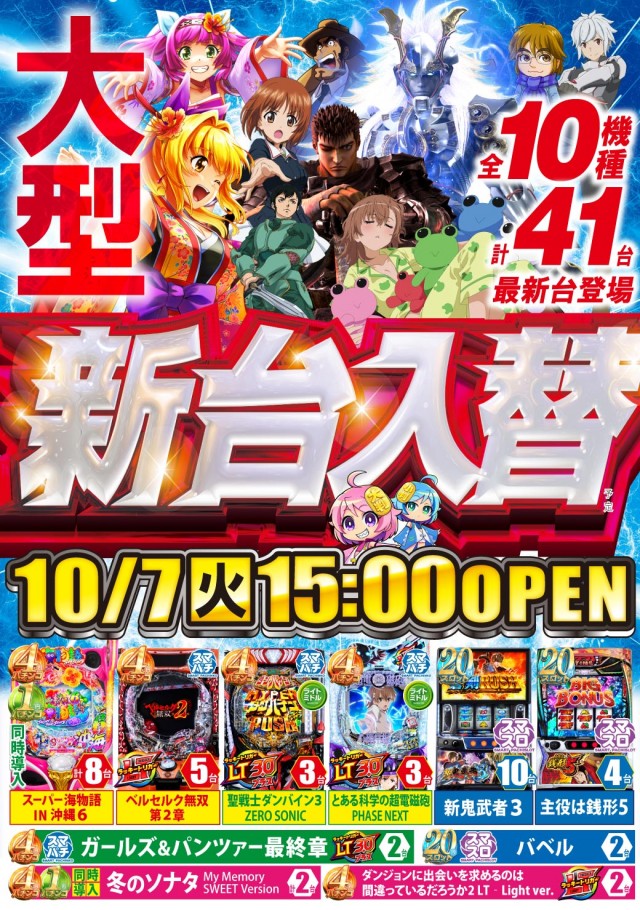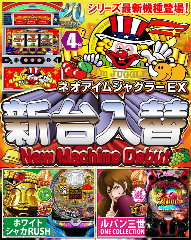 - [4]パチ:288台 [1]パチ:216台 [0.4]パチ:72台 [20]スロ:389台 [5]スロ:39台