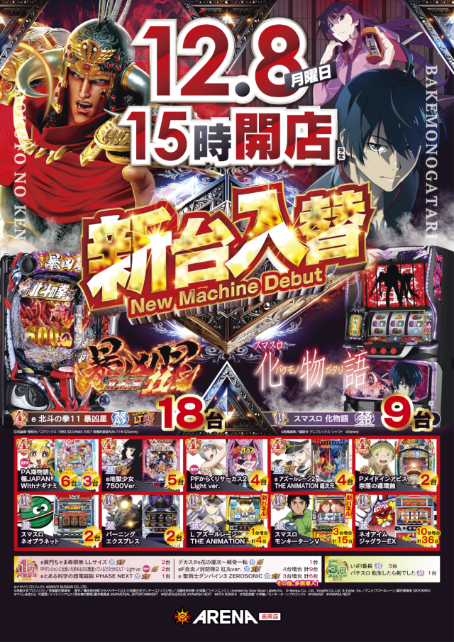 - [4]パチ:360台 [1]パチ:288台 [1000円/46枚]スロ:440台 [5]スロ:66台