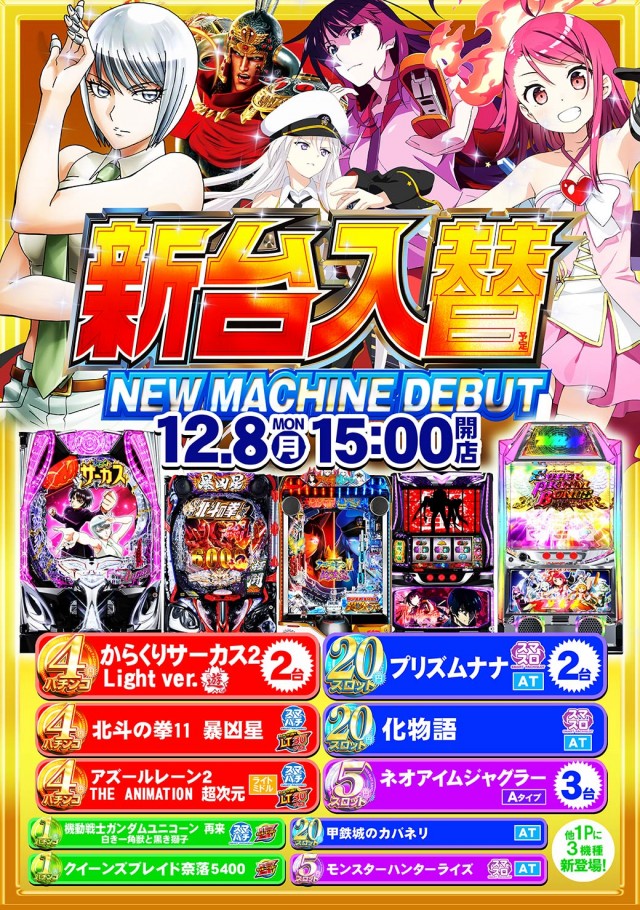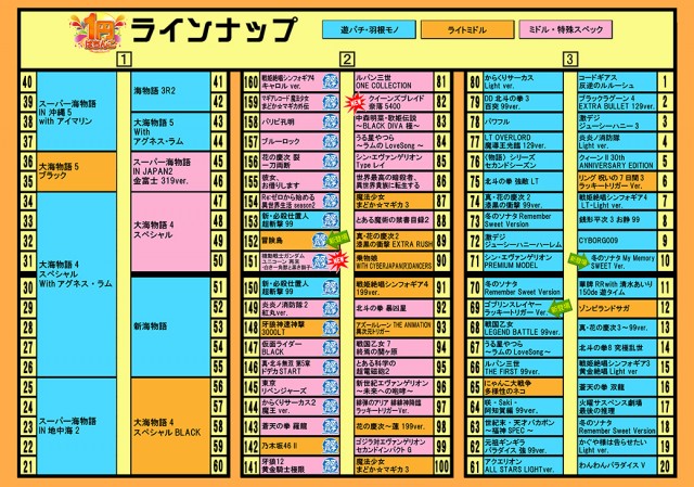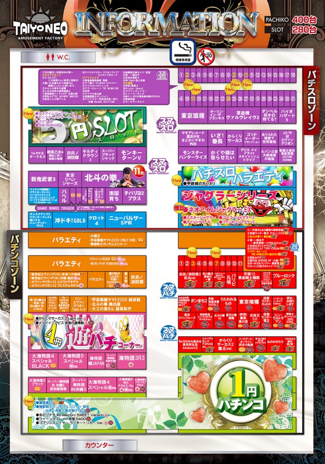 - [1]パチ:120台 [4]パチ:280台 [20]スロ:238台 [5]スロ:40台