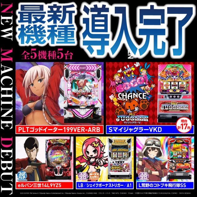 - [100円/96玉]パチ:80台 [4]パチ:300台 [1000円/47枚]スロ:262台