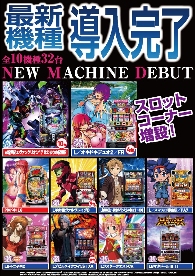 - [100円/96玉]パチ:80台 [4]パチ:280台 [1000円/47枚]スロ:283台