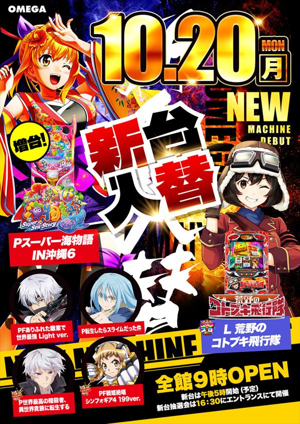 - [2]パチ:200台 [1]パチ:40台 [0.4]パチ:120台 [10]スロ:179台 [5]スロ:28台 [2]スロ:41台