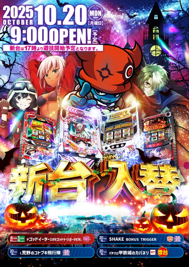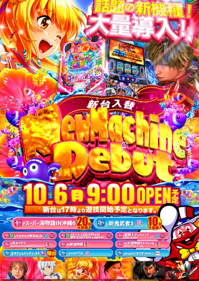 - 9:00~22:45(新台入替等で前後する場合もあります。)