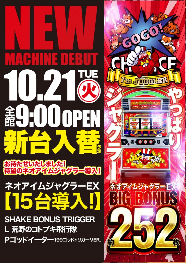 - [4]パチ:280台 [1]パチ:120台 [1000円/46枚]スロ:301台