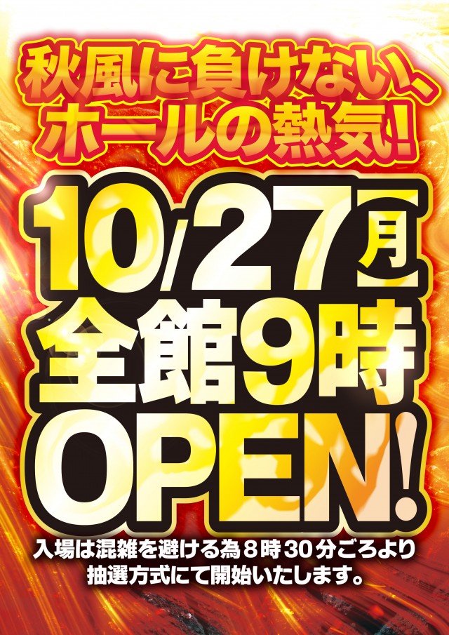 - 最新大型アミューズメントホールとして地域の皆様に、いまだかつてない感動をお届けすることが我々スタッフ一同の使命だと考えております。 お客様とスタッフの笑顔で溢れるホール創りに取り組んでまいりますので、末永くお付き合い宜しくお願い申し上げます 2012年12月27日GRAND OPEN
