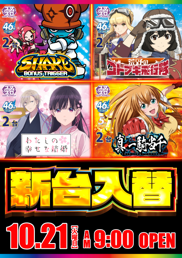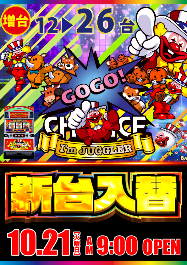 - [1]パチ:140台 [4]パチ:260台 [1000円/182枚]スロ:80台 [1000円/46枚]スロ:270台 [2]スロ:66台
