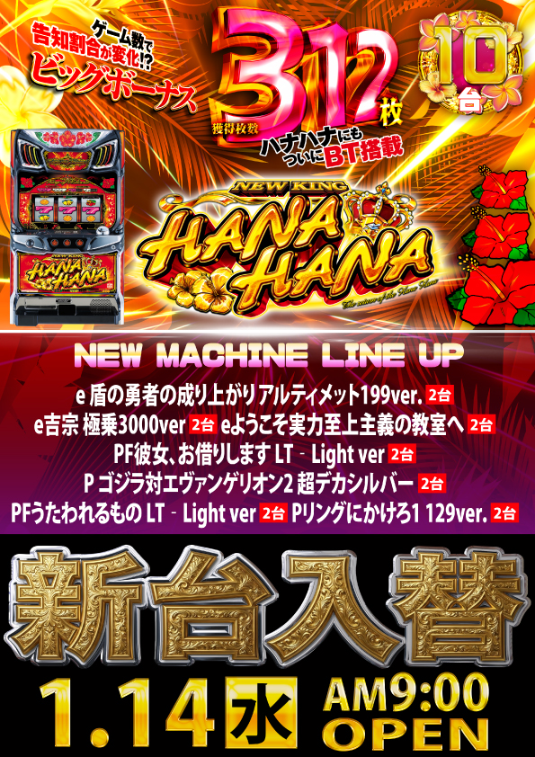 - [1]パチ:138台 [4]パチ:257台 [1000円/182枚]スロ:80台 [1000円/46枚]スロ:295台 [2]スロ:66台