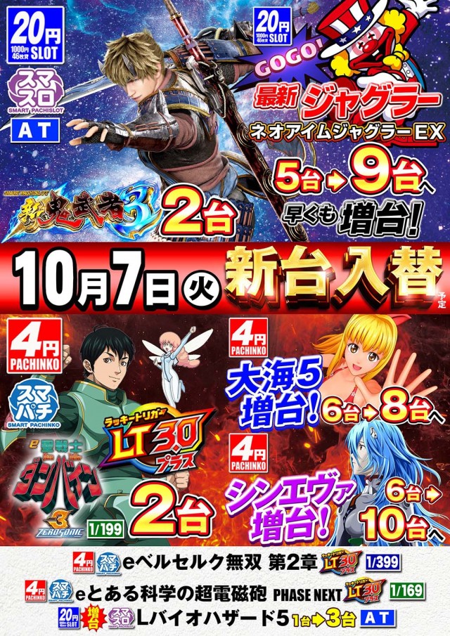 - 4パチ:115台、1パチ:76台 1000円46枚スロ:173台