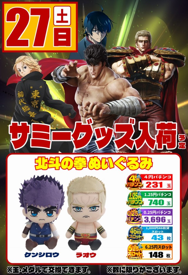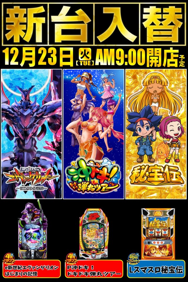 - [4]パチ:126台 [1.25]パチ:116台 [0.25]パチ:25台 [1000円/46枚]スロ:135台 [6.25]スロ:22台