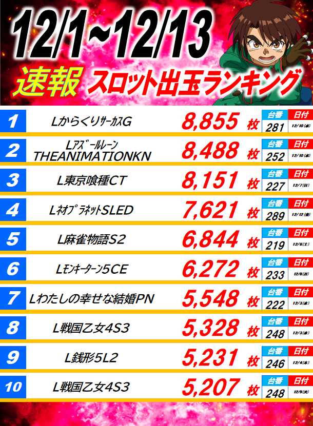 - 9:00~23:00(遊技終了時間は22:45)