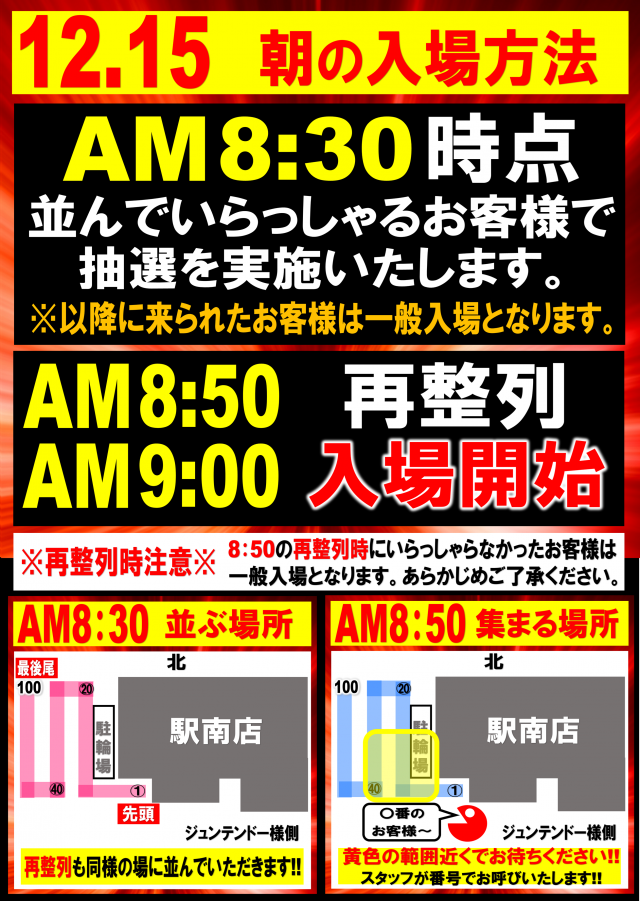 - 「2名以上の並びで8:30~入場順番抽選実施」