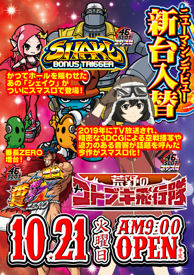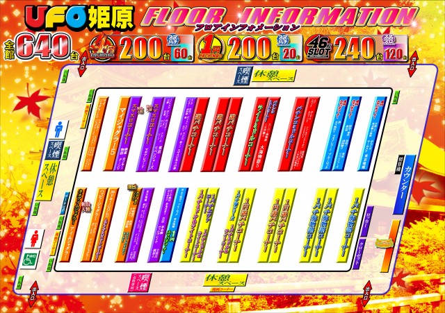 - 4パチ:200 1パチ:200台 46枚/1000円スロ:240台