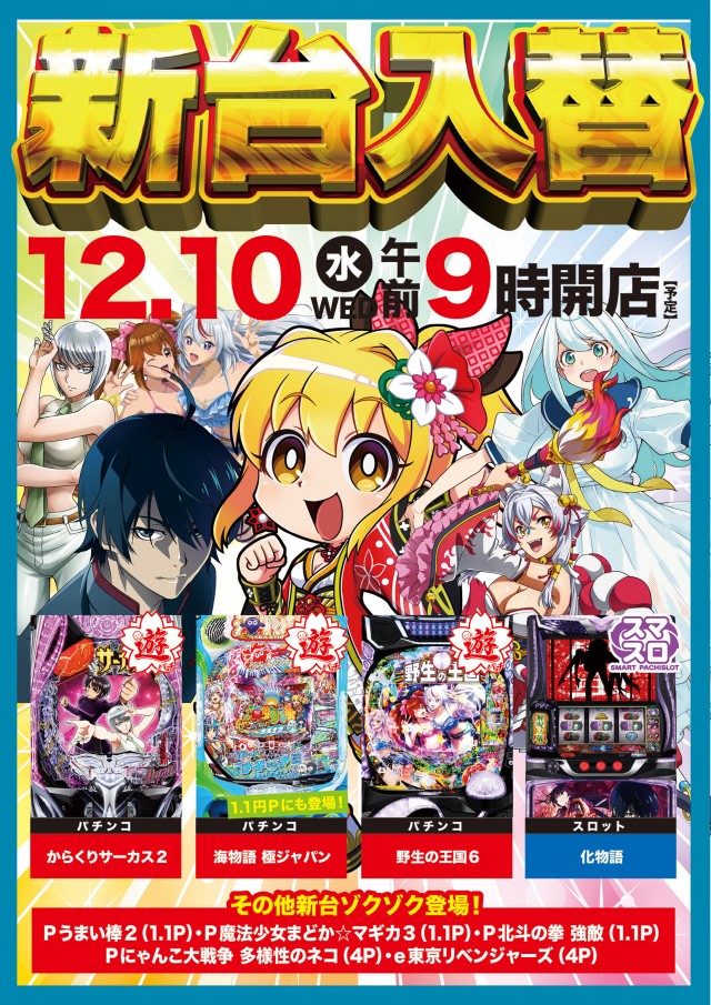 - [4]パチ:60台 [1.1]パチ:120台 [0.25]パチ:30台 [1000円/46枚]スロ:113台 [2.5]スロ:15台