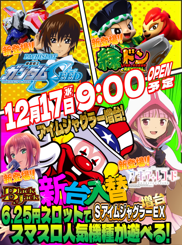 - 新紙幣対応済み!! 4円パチンコ80台! 1.25円パチンコ108台! 0.25円パチンコ40台! 1,000/46枚貸円スロット168台! 1,000円/160枚貸スロット34台! 人気機種勢揃い♪お好きなレートでお楽しみ下さい♪ 皆様のご来店をスタッフ一同心よりお待ち致しております。