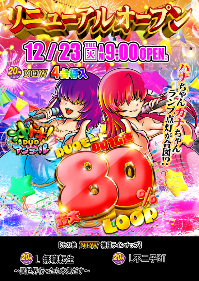 - [4]パチ:85台 [0.5]パチ:19台 [1.25]パチ:132台 [1000円/46枚]スロ:168台