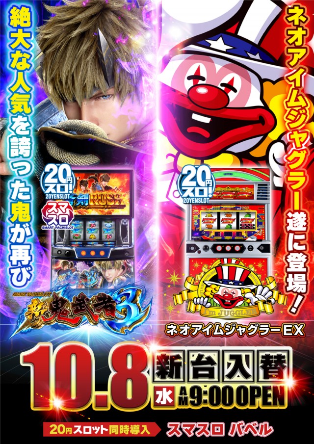 - 年中無休 新台入替前日は12時開店(予定)