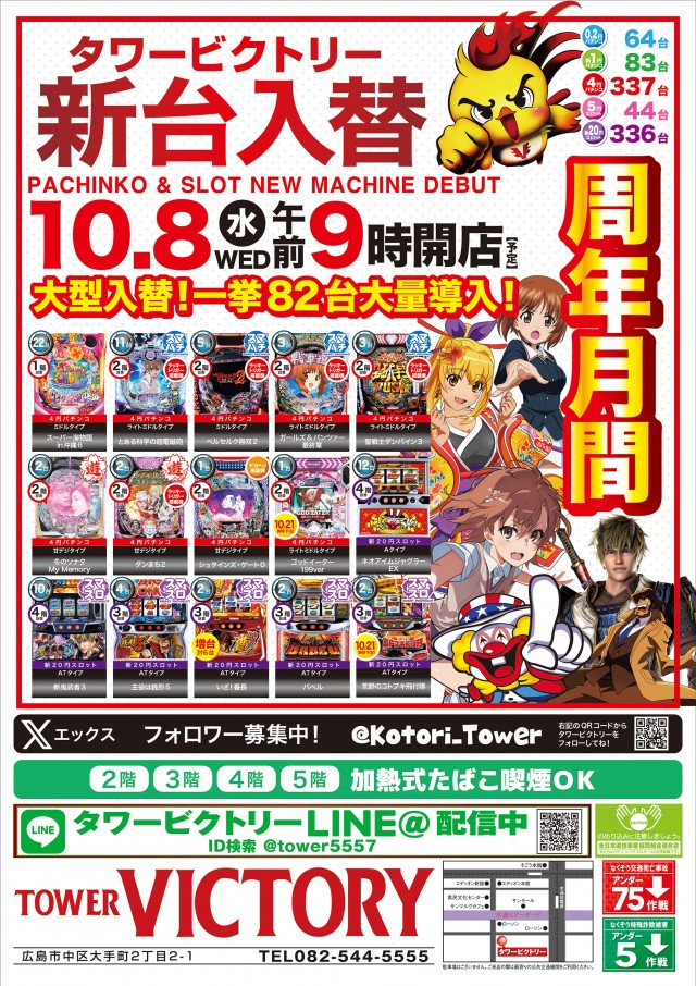 - 多層階型パチンコタワー『タワービクトリー』 全館分煙【2階、3階、4階、5階加熱式たばこ喫煙OK】
