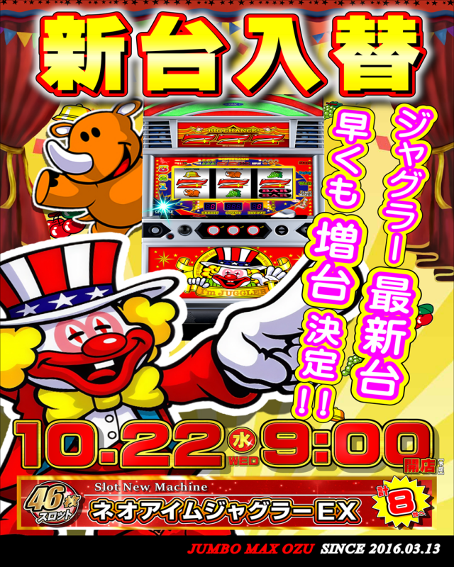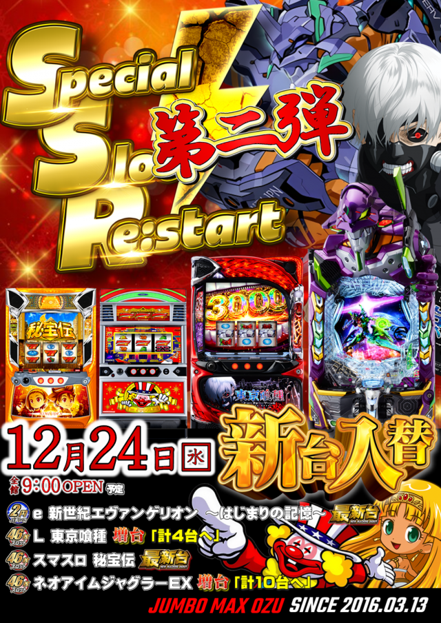 - 114玉パチ36台 2パチ36台 1.25パチ144台 46枚スロ168台 5スロ72台
