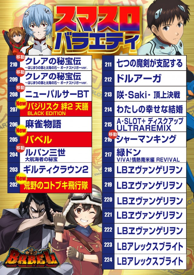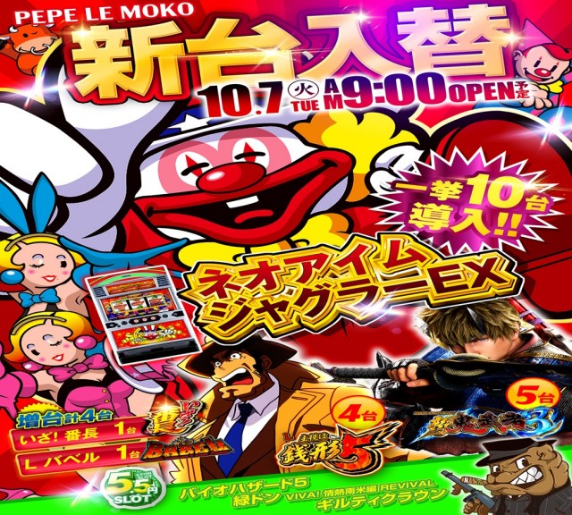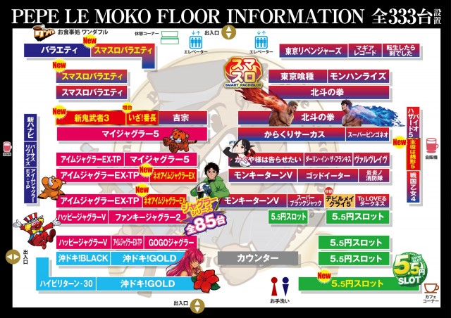- [1000円/46枚]スロ:296台 [1000円/182枚]スロ:37台
