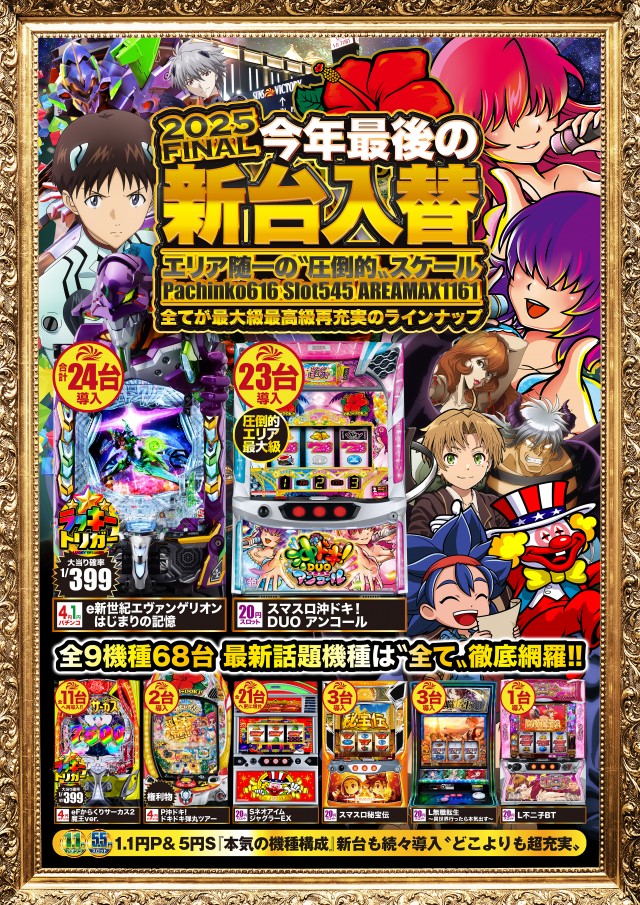- 県下最大スケール!!総台数「1161台」の遊びが此処に在る♪
