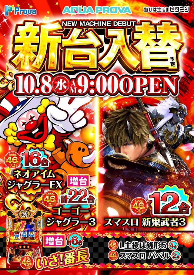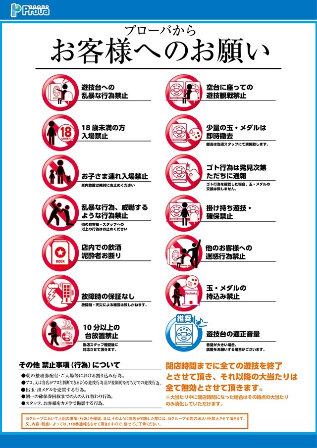 - 9:00 ~ 22:45 ※会員カード提示で22:50まで延長遊技可能