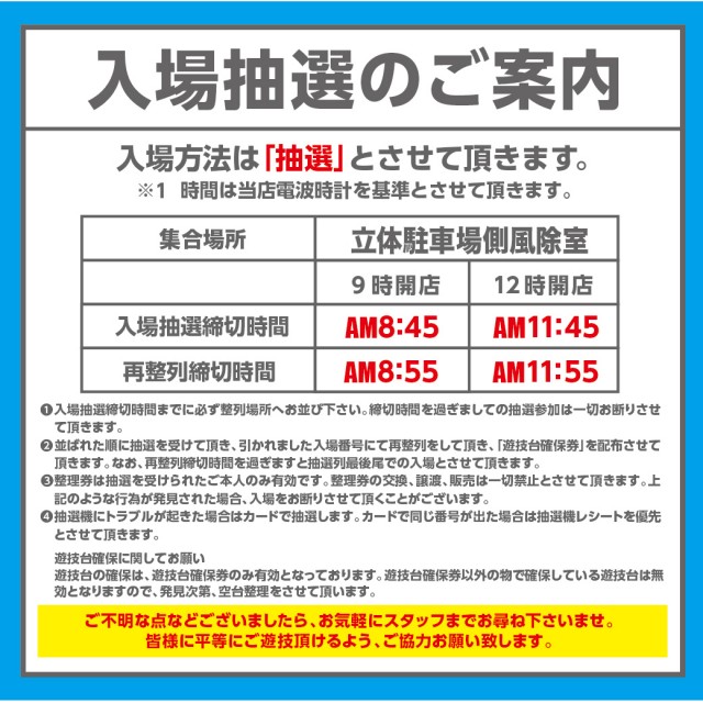 - 新台入替前日のみ12:00OPEN