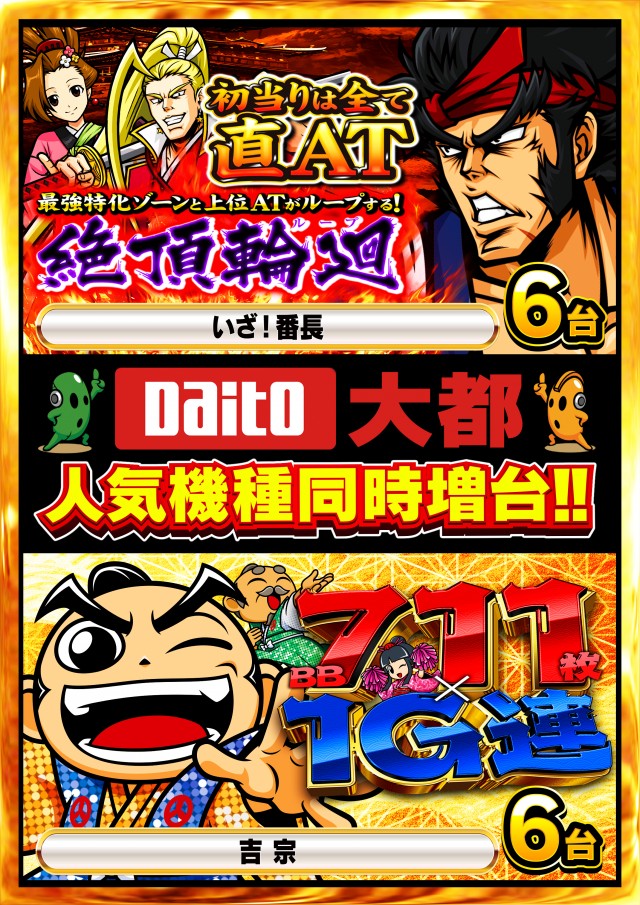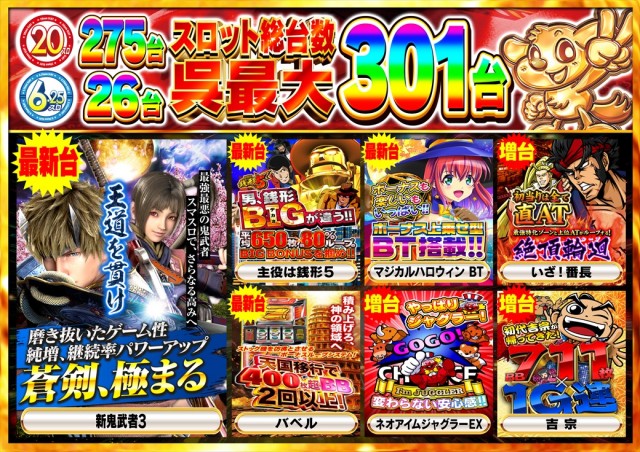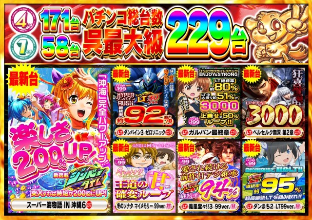 - [4]パチ:171台 [1]パチ:58台 [20]スロ:276台 [6.25]スロ:26台