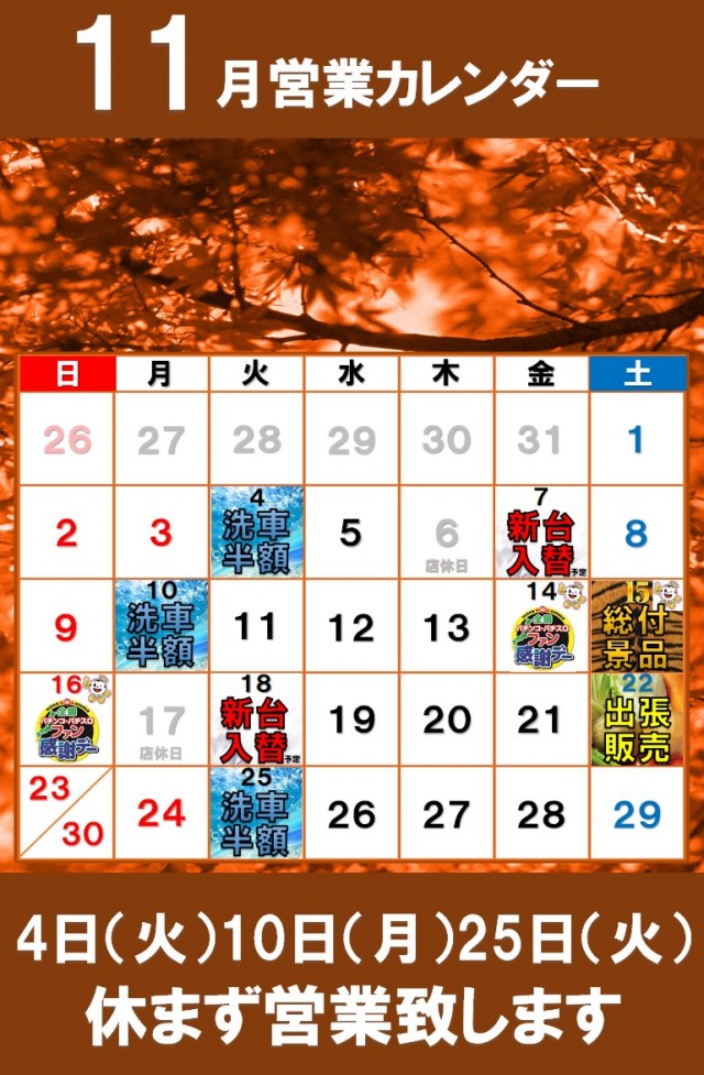 - ・大型駐車場完備!・・・・・約500台分 ・全紙幣対応サンド完備!・・・・・両替いらずでラクラク遊技 ・選んで遊べる4スタイル・・・4円・1円・21.73円・5.52円 ・パチンコ全台パーソナルシステム設置!